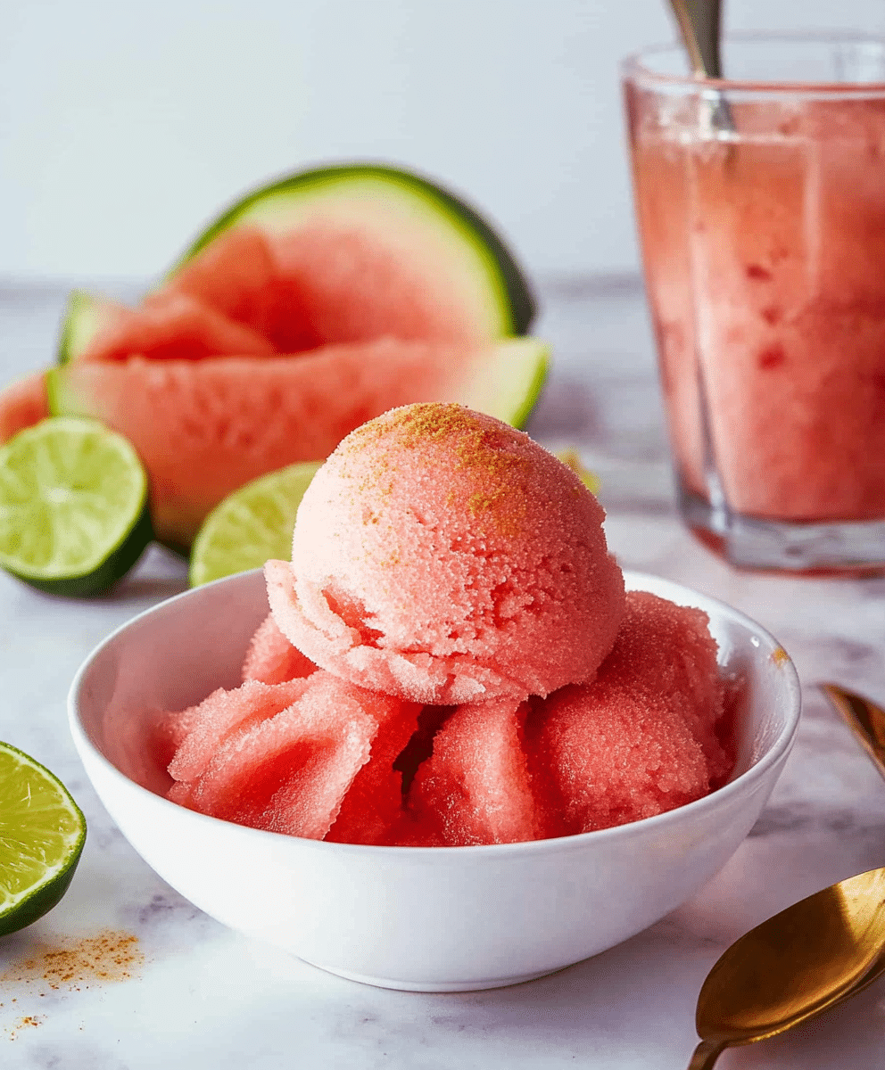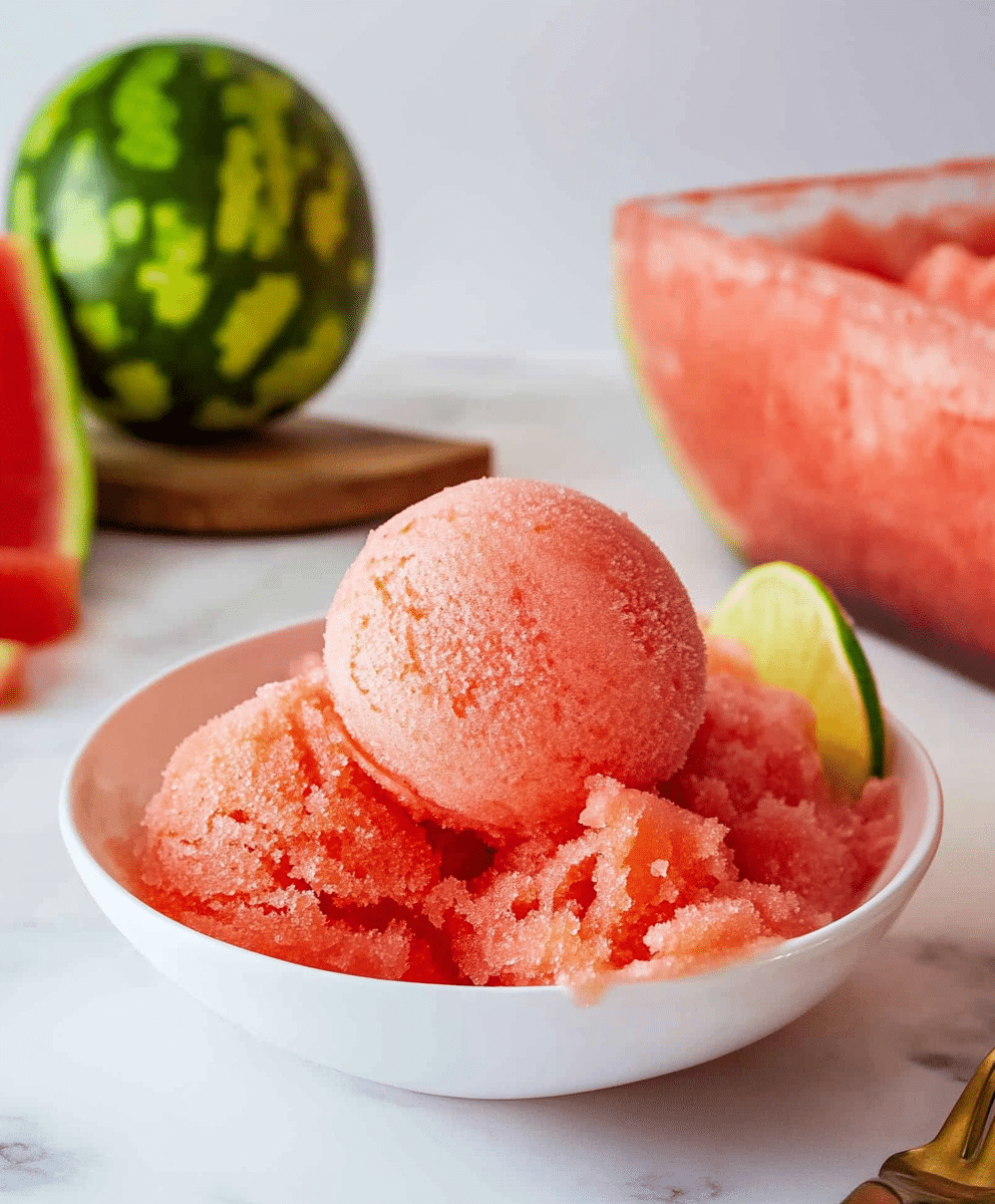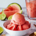 This quick and easy 5-minute Watermelon Sorbet recipe is a refreshing summer dessert made with frozen watermelon, lime juice, and a touch of sweetness. Perfect for hot days, it's dairy-free, naturally sweet, and requires no ice cream maker.