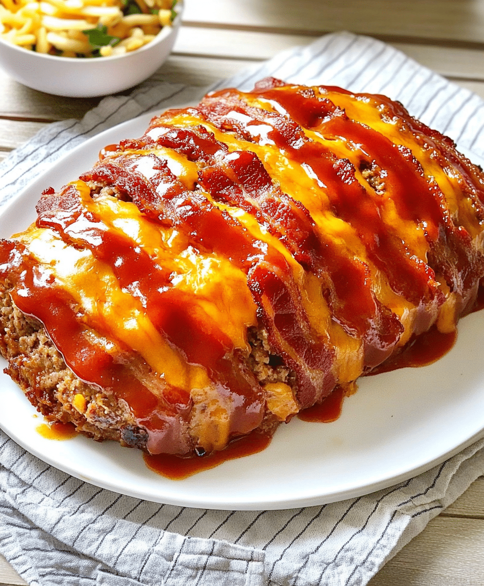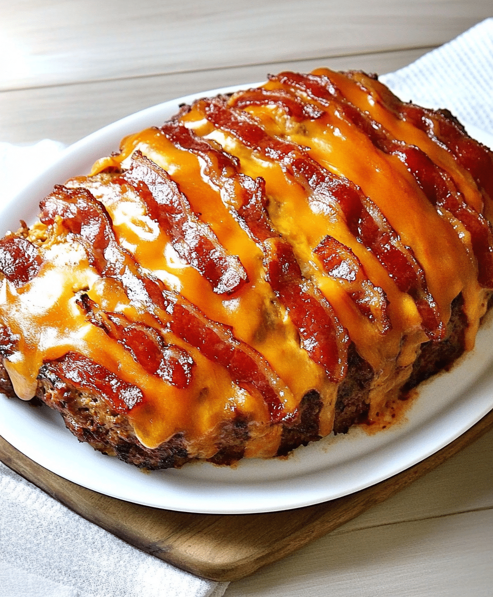 This bacon cheeseburger meatloaf recipe combines the classic flavors of a cheeseburger into a hearty, comforting dish.