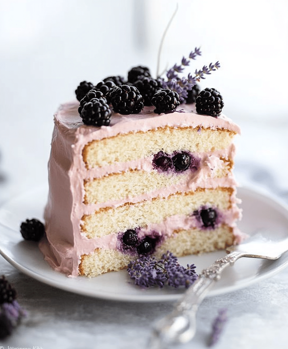 - Decorate (Optional): You can garnish the cake with fresh blackberries, lavender sprigs, and edible flowers for an extra elegant touch.