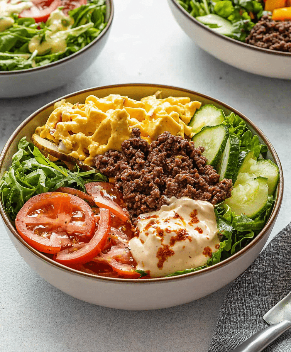 Customization is another huge win. Whether you prefer classic toppings like cheddar and pickles, or want to spice it up with jalapeños and chipotle mayo, these bowls are infinitely versatile. You can even make them vegetarian or dairy-free with a few simple swaps.