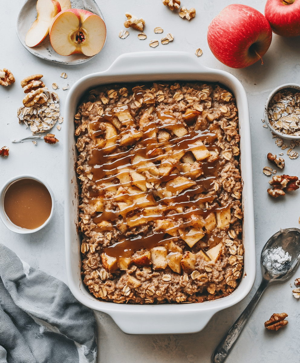 This Caramel Apple Oatmeal Bake combines the cozy flavors of caramel and fresh apples with hearty oats, making it a perfect breakfast treat. Enjoy the deliciously warm, cinnamon-spiced oatmeal baked with caramelized apple slices, bringing the ideal balance of sweetness and texture. An excellent recipe for fall mornings or any time you want a comforting, wholesome meal.