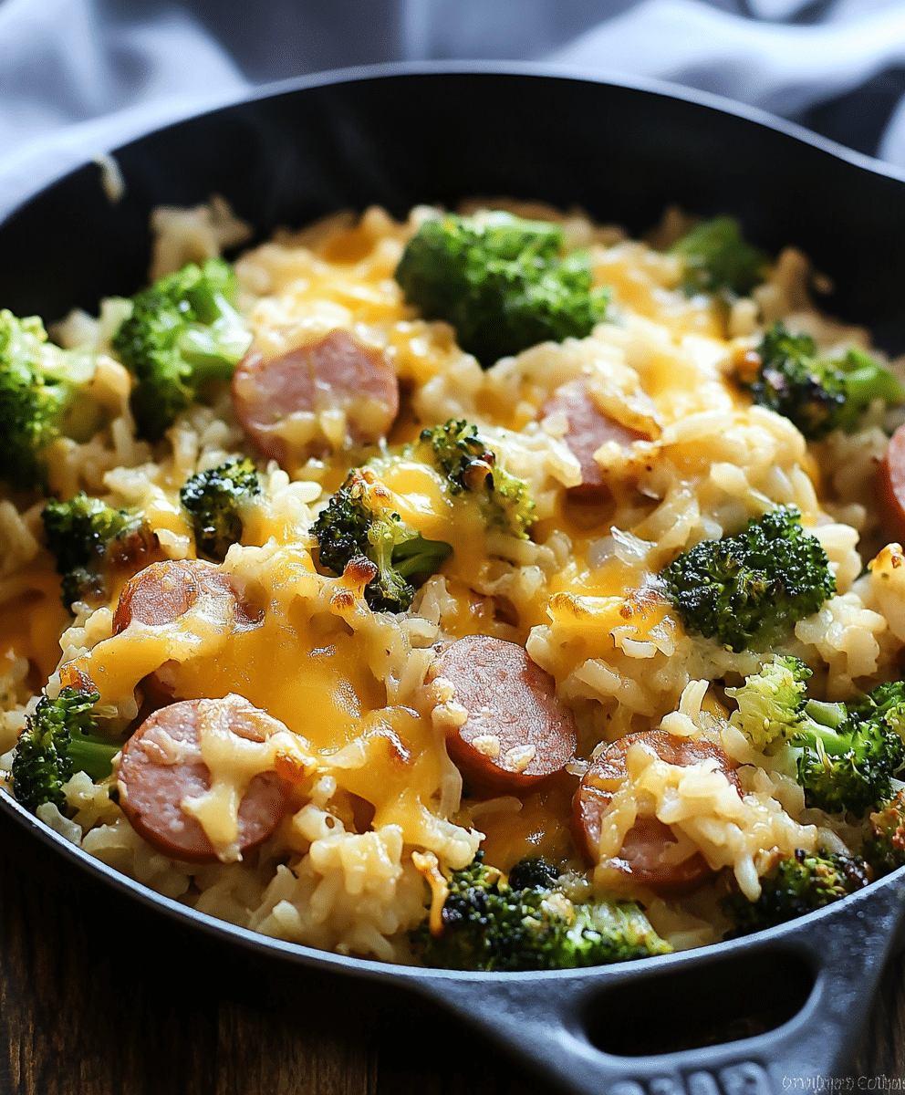 Cheesy Kielbasa Rice and Broccoli Skillet is a perfect weeknight meal that combines savory kielbasa, fluffy rice, and tender broccoli with gooey melted cheese. This delicious skillet dish comes together in one pan, making cleanup easy while offering loads of flavor. Perfect for a busy weeknight dinner or a cozy meal, this recipe highlights the simplicity of comfort food with satisfying ingredients.