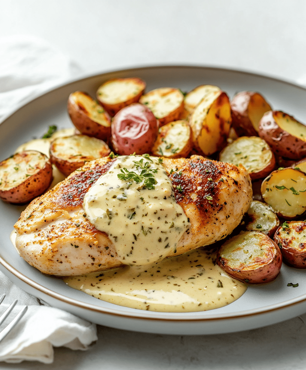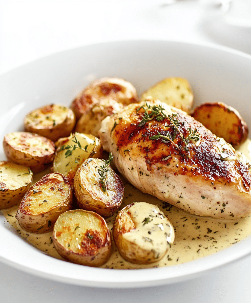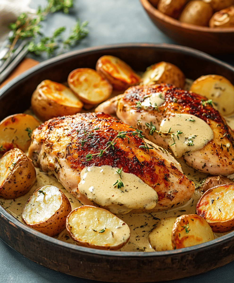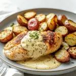 This savory Chicken and Potatoes with Dijon Cream Sauce recipe features tender chicken, crispy potatoes, and a rich, tangy mustard-based sauce. A comforting meal perfect for weeknights or special occasions.