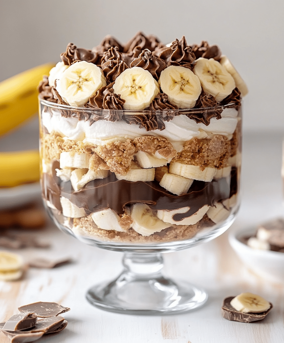 This Chocolate Peanut Butter Banana Cream Trifle combines rich layers of chocolate pudding, peanut butter, and fresh bananas for a show-stopping dessert. Perfectly layered for a flavorful bite every time, this trifle is easy to assemble, making it ideal for parties and family gatherings.