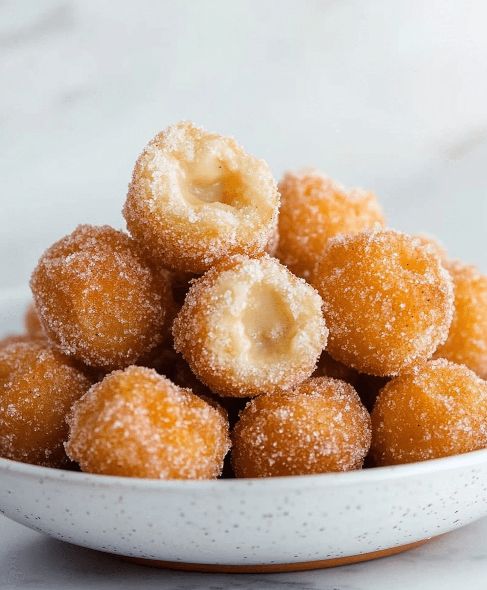 Churros poppers are bite-sized delights, fried to perfection and rolled in cinnamon sugar. These mini churros are crispy on the outside and soft on the inside, making them a perfect treat for dessert or snacking. The recipe uses simple ingredients and is easy to make, ensuring a sweet, crunchy, and irresistible treat every time.