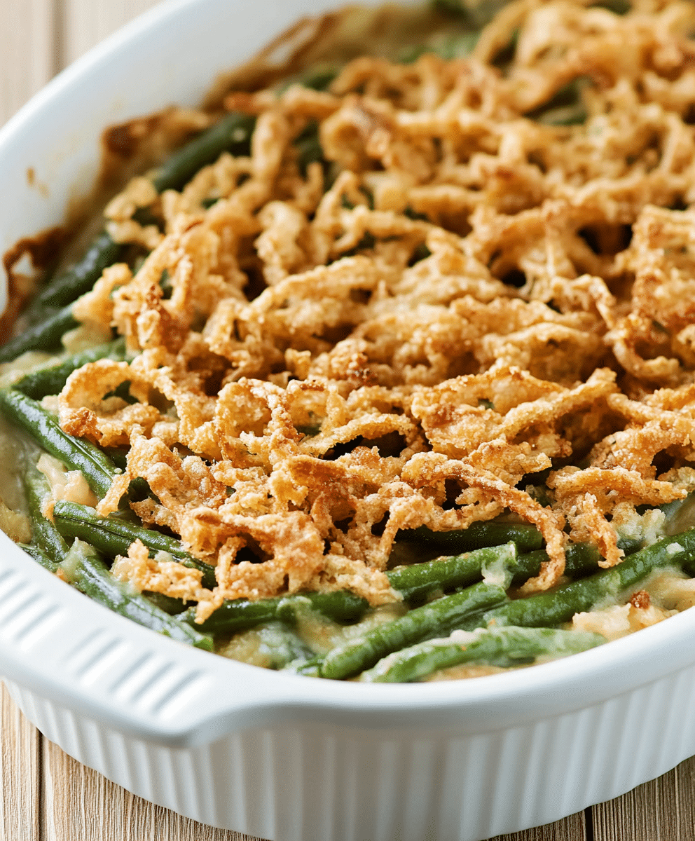 - Crispy Fried Onions: If you prefer a gluten-free or healthier alternative, you can use gluten-free fried onions, or make your own with thinly sliced onions that are baked or air-fried for crispiness. For a unique twist, try topping the casserole with crushed Ritz crackers or panko breadcrumbs.