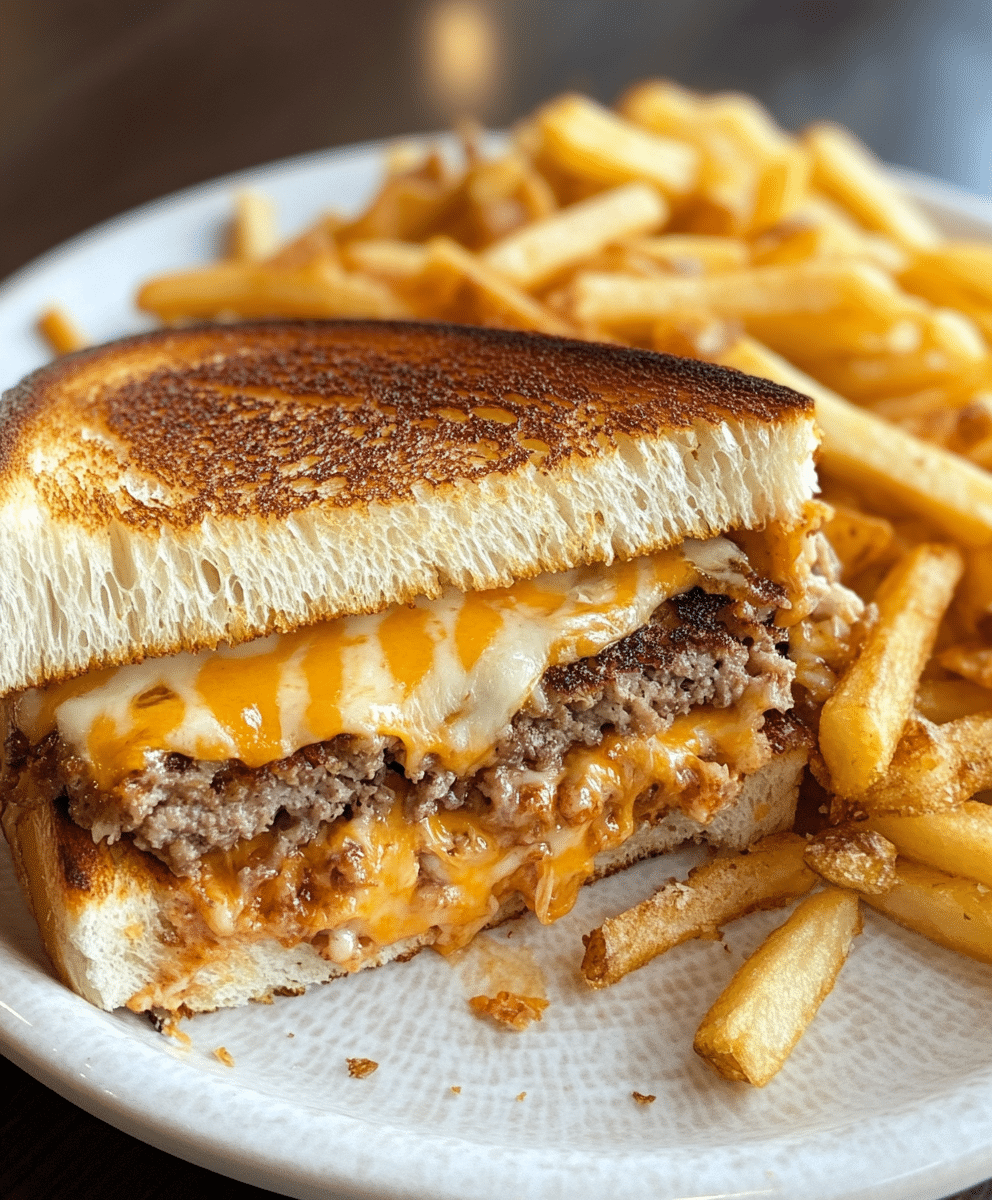 A patty melt is an iconic American sandwich made with ground beef patties, melted Swiss or American cheese, caramelized onions, and buttery, crispy bread, typically rye. Unlike a typical burger, a patty melt isn’t served on a traditional bun but on sliced bread, giving it a crunchier texture and richer taste. The fusion of flavors and textures—savory beef, creamy cheese, sweet onions, and crispy bread—is what makes the patty melt a beloved favorite.