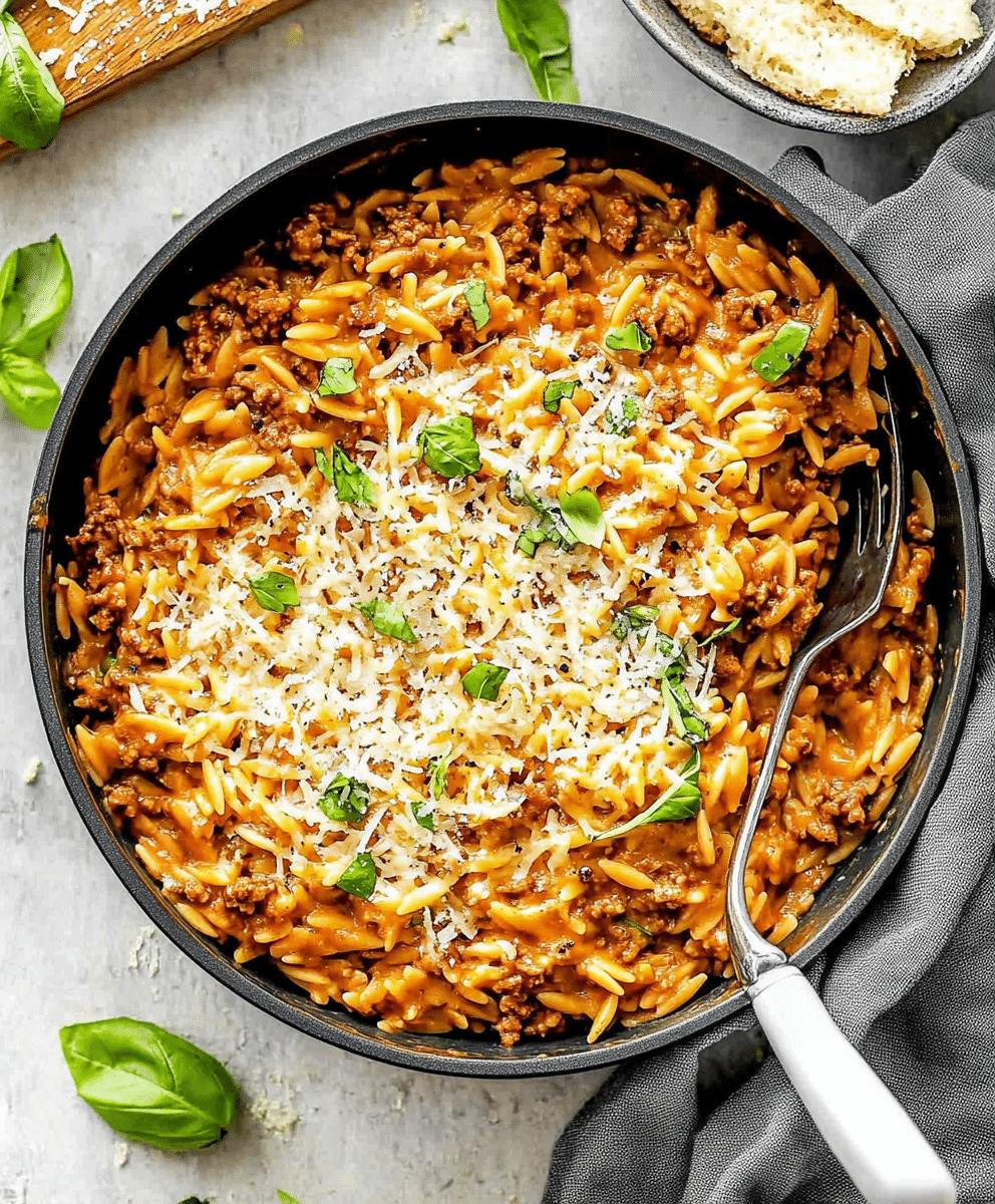 The beauty of Creamy Ground Beef Orzo lies in its simplicity—every ingredient has a role to play, working together to build rich, layered flavor in just one pan.