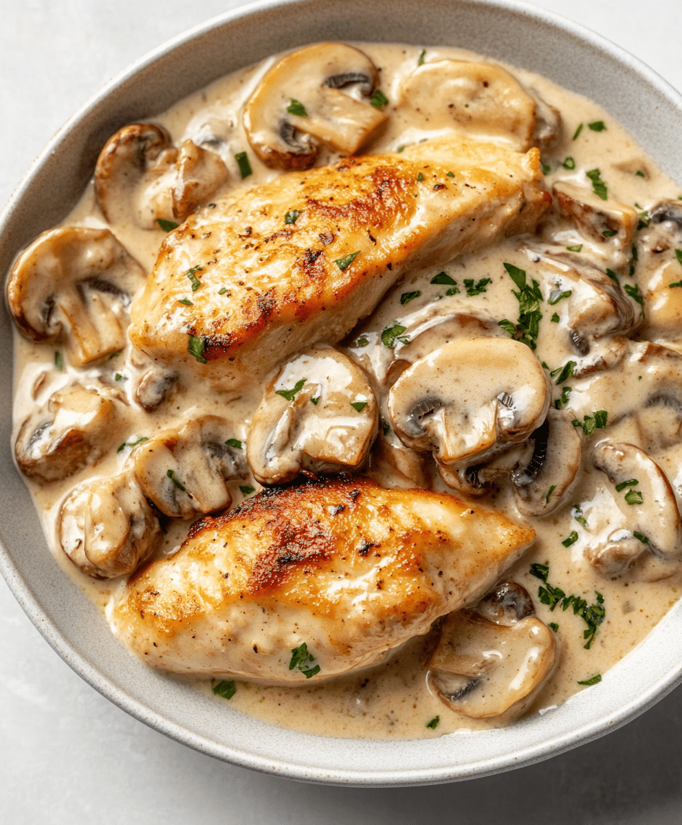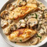 Creamy Mushroom Chicken is a hearty and comforting dish where seasoned chicken breasts are pan-seared until golden and then simmered in a luxurious sauce made with mushrooms, garlic, butter, heavy cream, and herbs. The combination of tender chicken and creamy sauce creates a comforting meal that’s perfect for a weeknight dinner or special occasion. The sauce pairs wonderfully with a variety of side dishes like mashed potatoes, pasta, or even rice, making it versatile and well-loved by all.