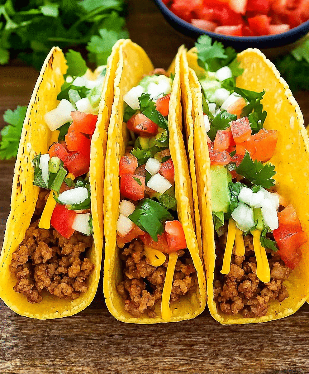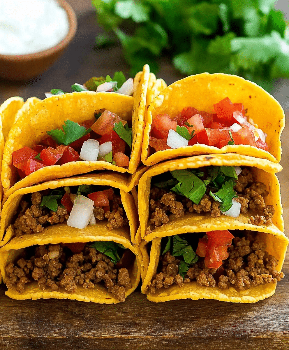 Crispy ground beef tacos are the ultimate weeknight meal. Made with seasoned beef, fresh toppings, and crispy shells, this recipe is quick, easy, and full of bold flavors. Perfect for taco night with the family or entertaining guests!
