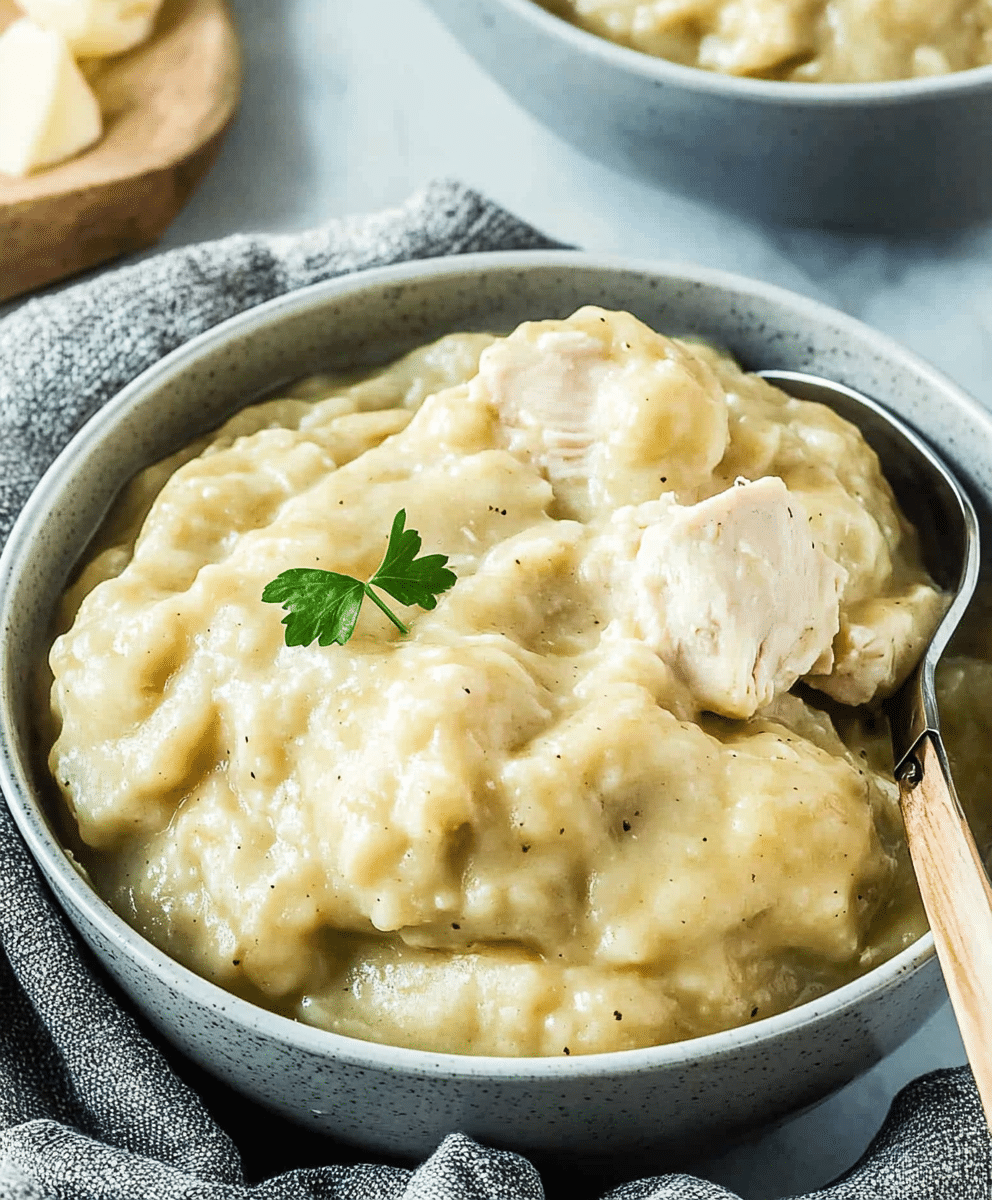 The texture is unbeatable. The chicken is fall-apart tender, while the dumplings soak up the flavorful broth, creating a perfect balance of softness and chewiness.
