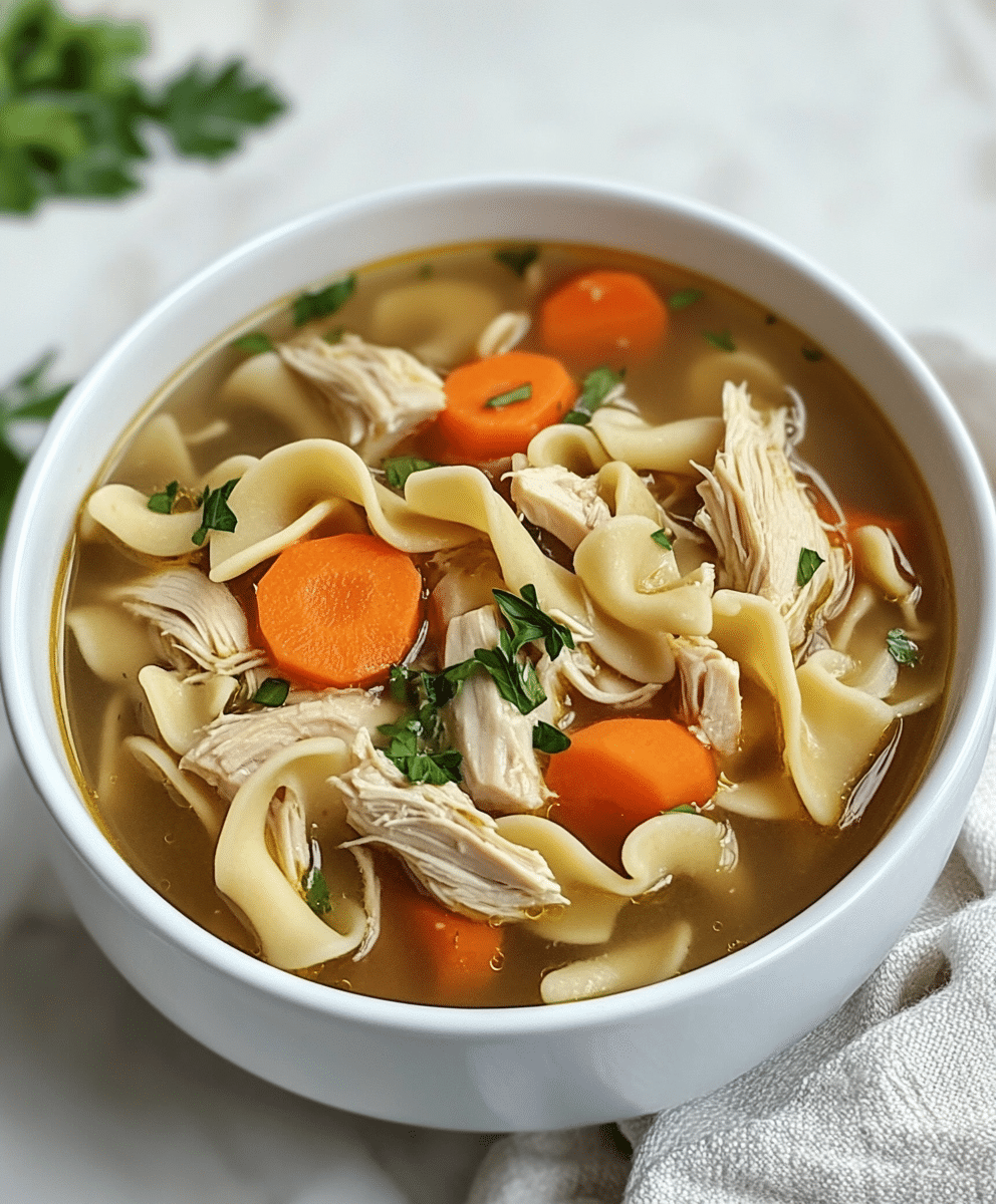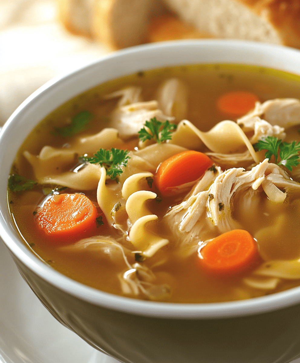 Crockpot Chicken Noodle Soup is a comforting, easy-to-make dish that brings warmth and nourishment to any meal. With the convenience of a slow cooker, this recipe is perfect for busy weeknights or meal prep. Whether you’re looking to soothe a cold or simply want a cozy bowl of soup, this recipe is sure to hit the spot. So grab your ingredients, follow the steps, and enjoy a delicious bowl of homemade chicken noodle soup!