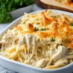 Chicken Tetrazzini is a baked pasta dish named after the famous Italian opera singer, Luisa Tetrazzini. Traditionally, it includes a creamy sauce made from butter, flour, broth, and heavy cream or milk, mixed with tender chicken, mushrooms, and cheese. The dish is then topped with breadcrumbs or grated cheese and baked to perfection. The combination of ingredients creates a comforting, hearty meal that’s perfect for feeding a crowd.