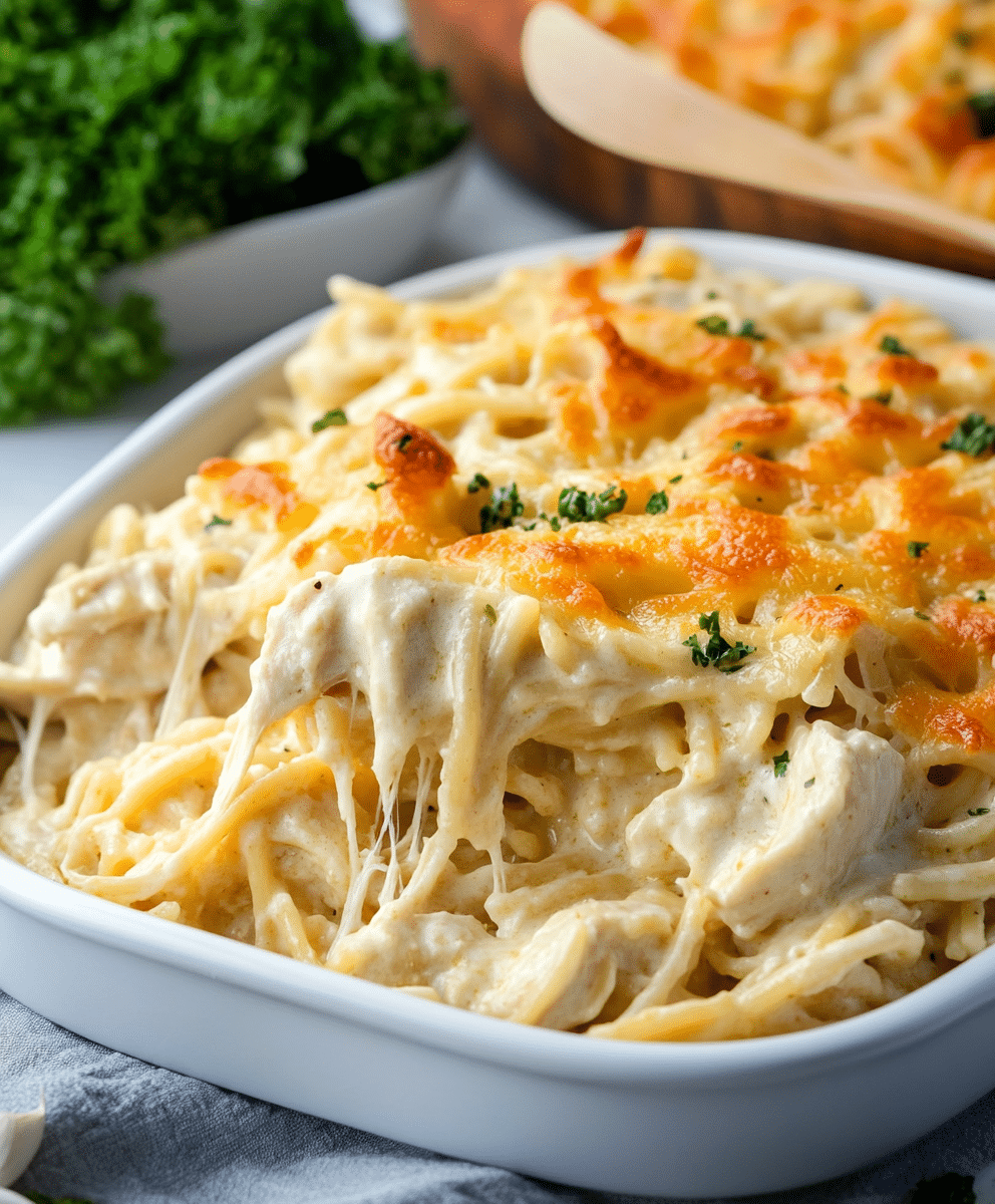 - Garnish and Serve: Remove the Chicken Tetrazzini from the oven and let it cool for a few minutes. Garnish with freshly chopped parsley and serve.