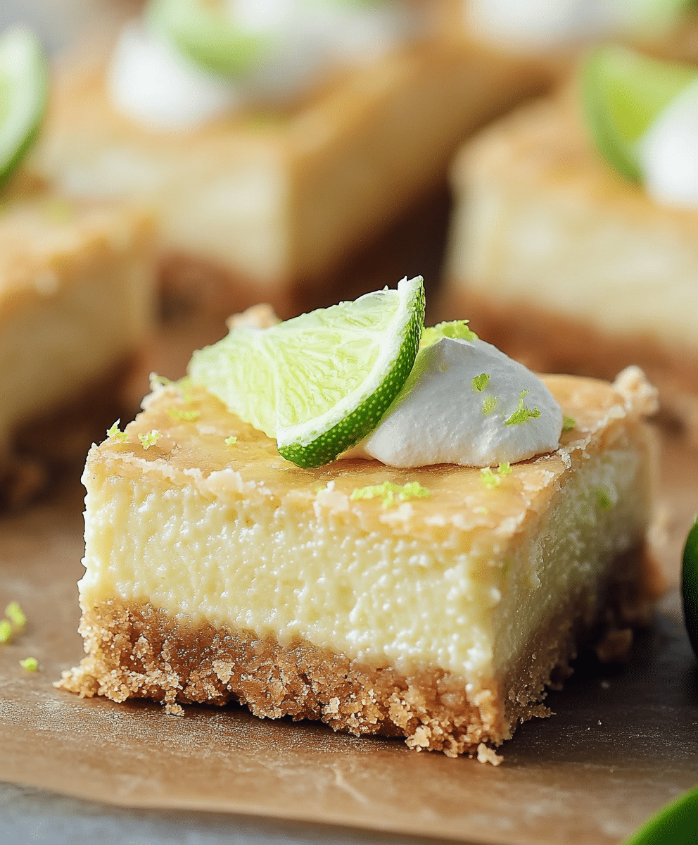 - Garnish with lime slices or zest: A sprinkle of lime zest or a thin slice of lime on top of each bar adds a pop of color and makes for a beautiful presentation.