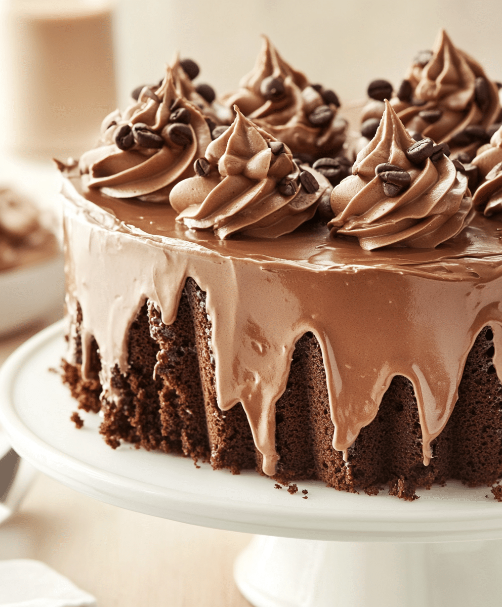 - Frost the Cake: Spread the mocha frosting evenly over the top of the cake.
