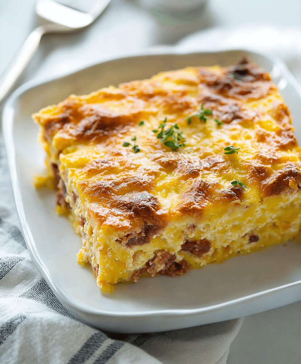 - Bake the Casserole: Place the casserole in the preheated oven and bake for 45 to 50 minutes, or until the eggs are fully set and the top is golden brown. You can check for doneness by inserting a knife into the center—if it comes out clean, your casserole is ready!