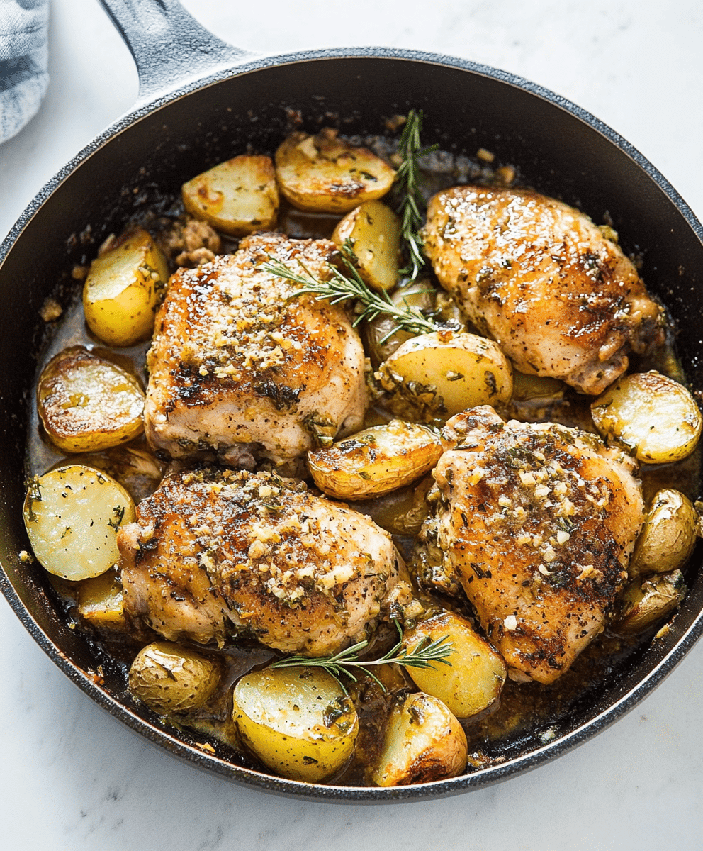 This Garlic Parmesan Chicken and Potatoes Skillet is a flavorful one-pan dish made with tender chicken, crispy potatoes, and a savory garlic-parmesan seasoning. Perfect for weeknight dinners, it’s a hearty and delicious meal for the whole family.