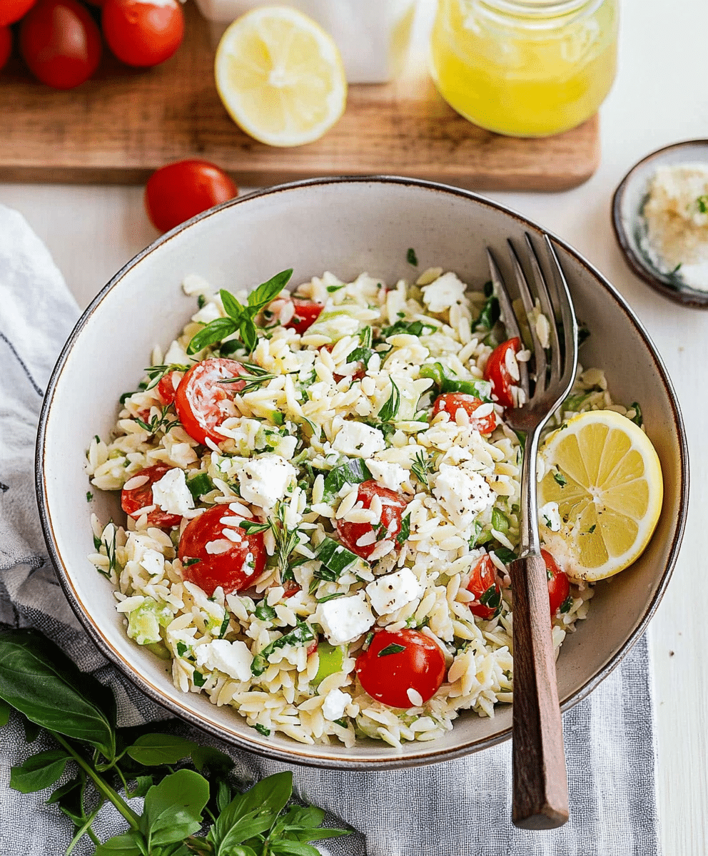 It’s also budget-friendly without tasting like it. Orzo is inexpensive and stretches beautifully, and most of the ingredients—like cucumbers, cherry tomatoes, and red onion—are easy to find year-round without breaking the bank.