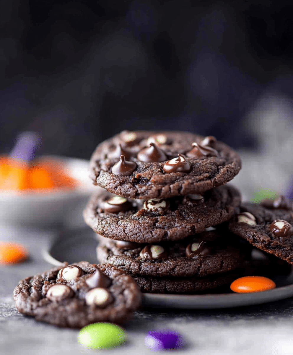 Halloween Chocolate Cookies are simply chocolate cookies that have been given a festive twist to celebrate the Halloween season. These cookies are packed with rich cocoa flavor and decorated with fun Halloween-themed elements like spooky sprinkles, googly eyes, or even shaped like bats, pumpkins, or ghosts. With their dark chocolatey base, they fit right into the theme of the eerie holiday.