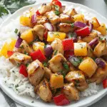 This Hawaiian Chicken Sheet Pan Recipe is a quick, flavorful meal featuring marinated chicken, caramelized pineapple, and colorful veggies, all roasted to perfection. Ideal for busy weeknights, this one-pan dish delivers a delicious balance of sweet and savory flavors, with easy clean-up.