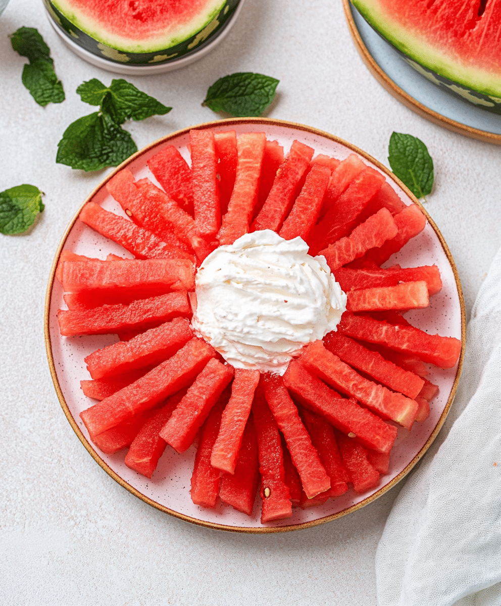 And let’s not forget that this recipe is healthy and naturally sweet. There’s no added sugar or artificial flavors here. Watermelon is rich in hydration and vitamin C, and the yogurt dip adds a boost of protein and probiotics.
