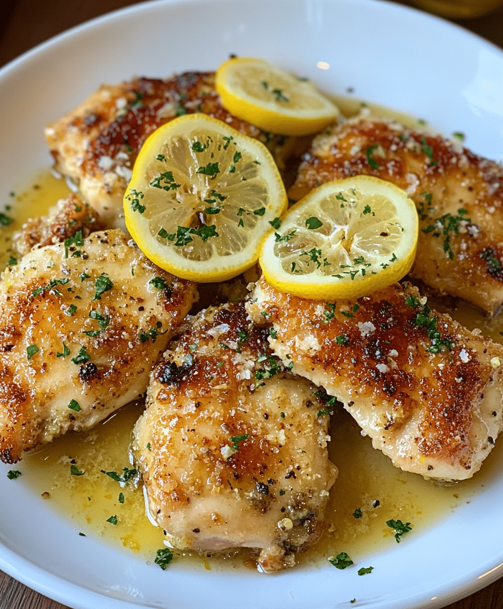 - Combine and Serve: Return the chicken to the pan, spooning the sauce over each piece to coat. Let everything simmer together for a minute to meld the flavors, then serve hot with an extra drizzle of sauce and a garnish of fresh lemon slices.