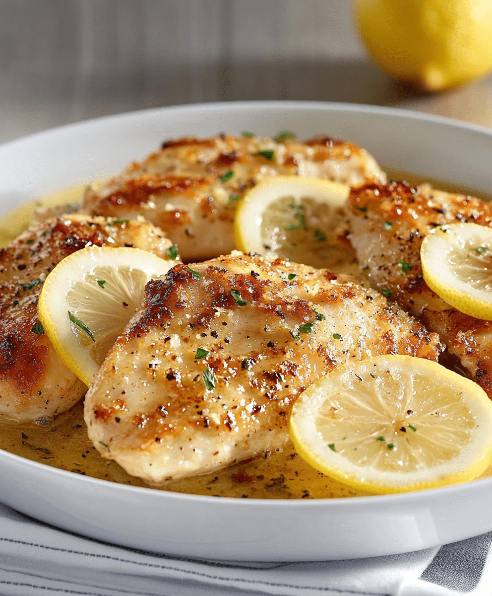 Lemon Chicken with Lemon Butter Sauce is a vibrant and savory dish featuring tender chicken breasts draped in a rich, tangy sauce. A quick and delightful recipe ideal for a weeknight dinner, bursting with fresh lemon flavor.