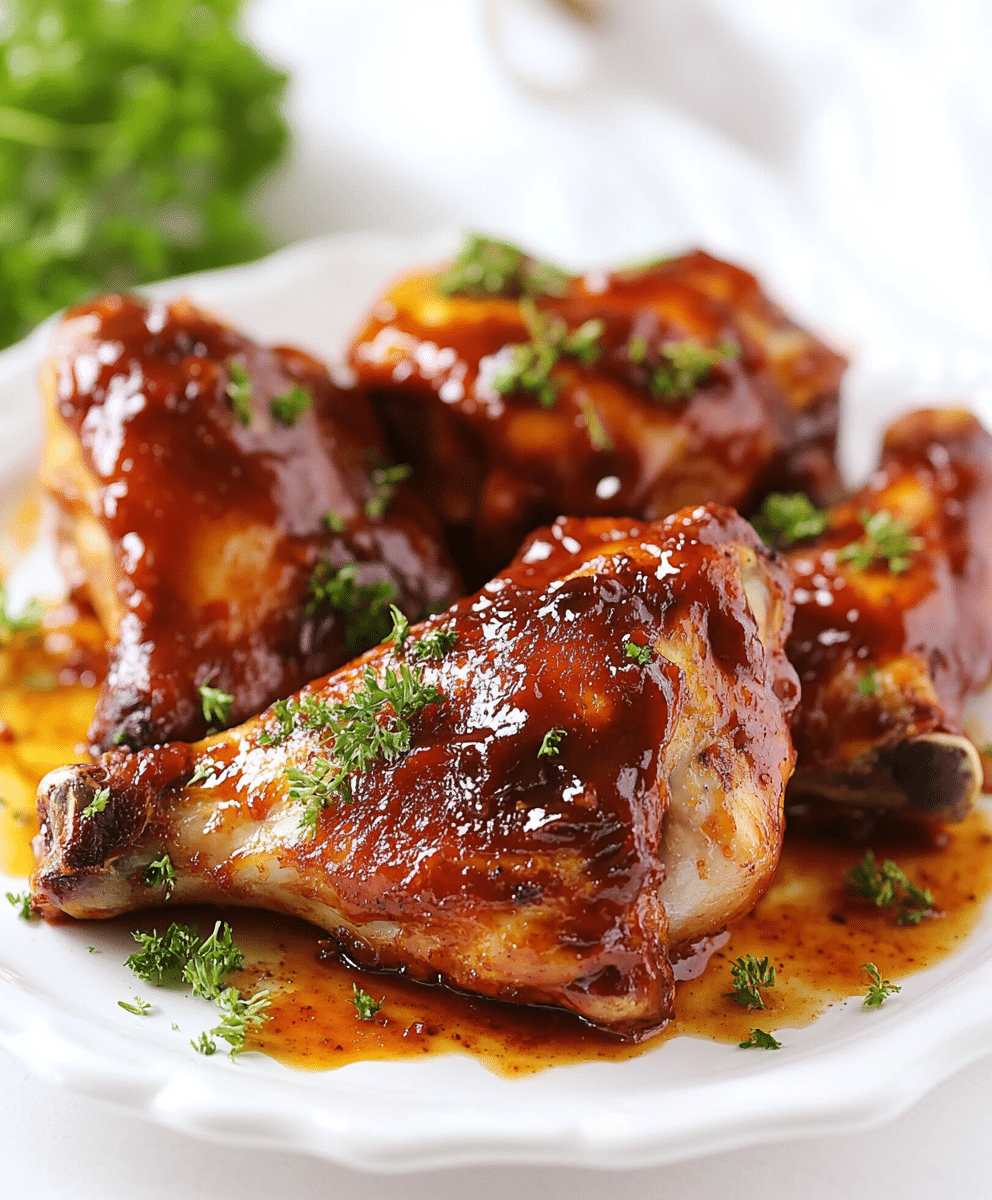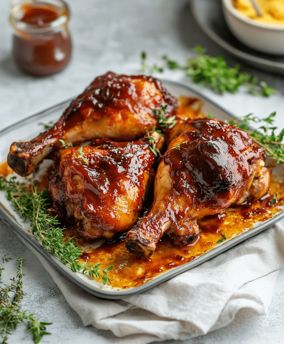 To make your dish stand out, arrange the chicken pieces on a large platter with sprigs of fresh herbs like parsley or cilantro for a pop of color. You can also drizzle a little extra BBQ sauce over the top or serve extra sauce on the side in a small bowl for dipping. Add a few lemon wedges for garnish to brighten the dish and provide an extra layer of flavor for guests who like a hint of citrus.