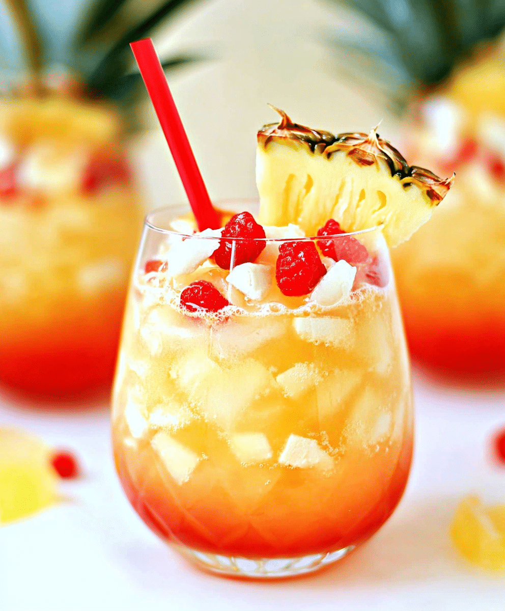 For a non-alcoholic version, simply skip the rum and swap the white wine for a bottle of sparkling white grape juice or coconut-flavored soda. It’s still tropical and fun—perfect for kids or mocktail lovers.