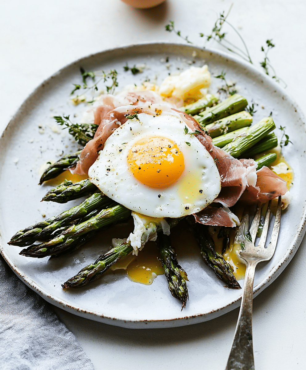 If you’re out of prosciutto, try bacon, pancetta, or even smoked salmon. Each brings its own vibe but still plays beautifully with asparagus and eggs.