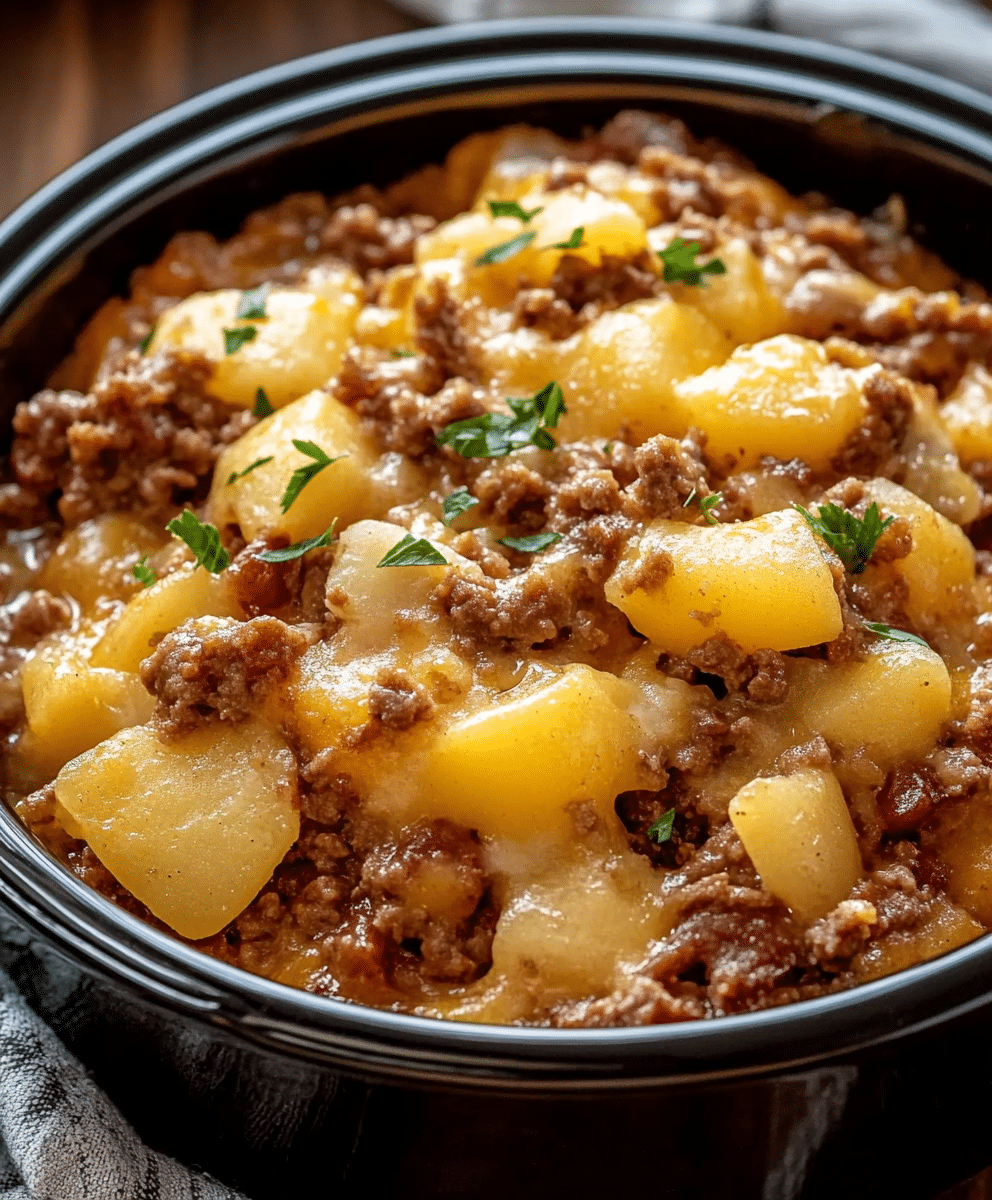 This Slow Cooker Cowboy Casserole is a savory and satisfying dish made with ground beef, potatoes, beans, and cheese. Perfect for a hearty dinner or meal prep, this recipe is easy to prepare and a favorite among all ages.