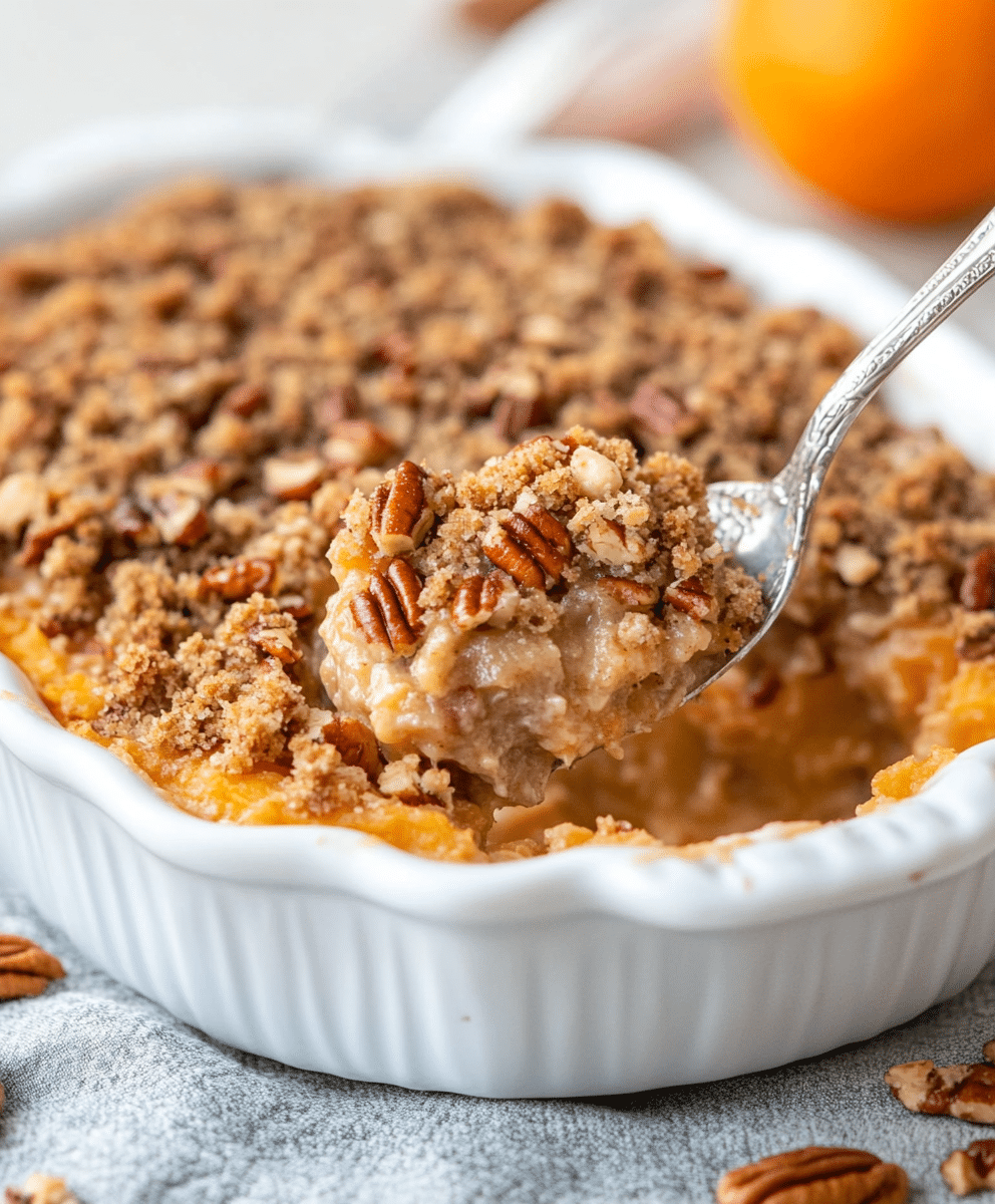 PrintSweet Potato Casserole With Butter Pecan Crumble Topping Recipe