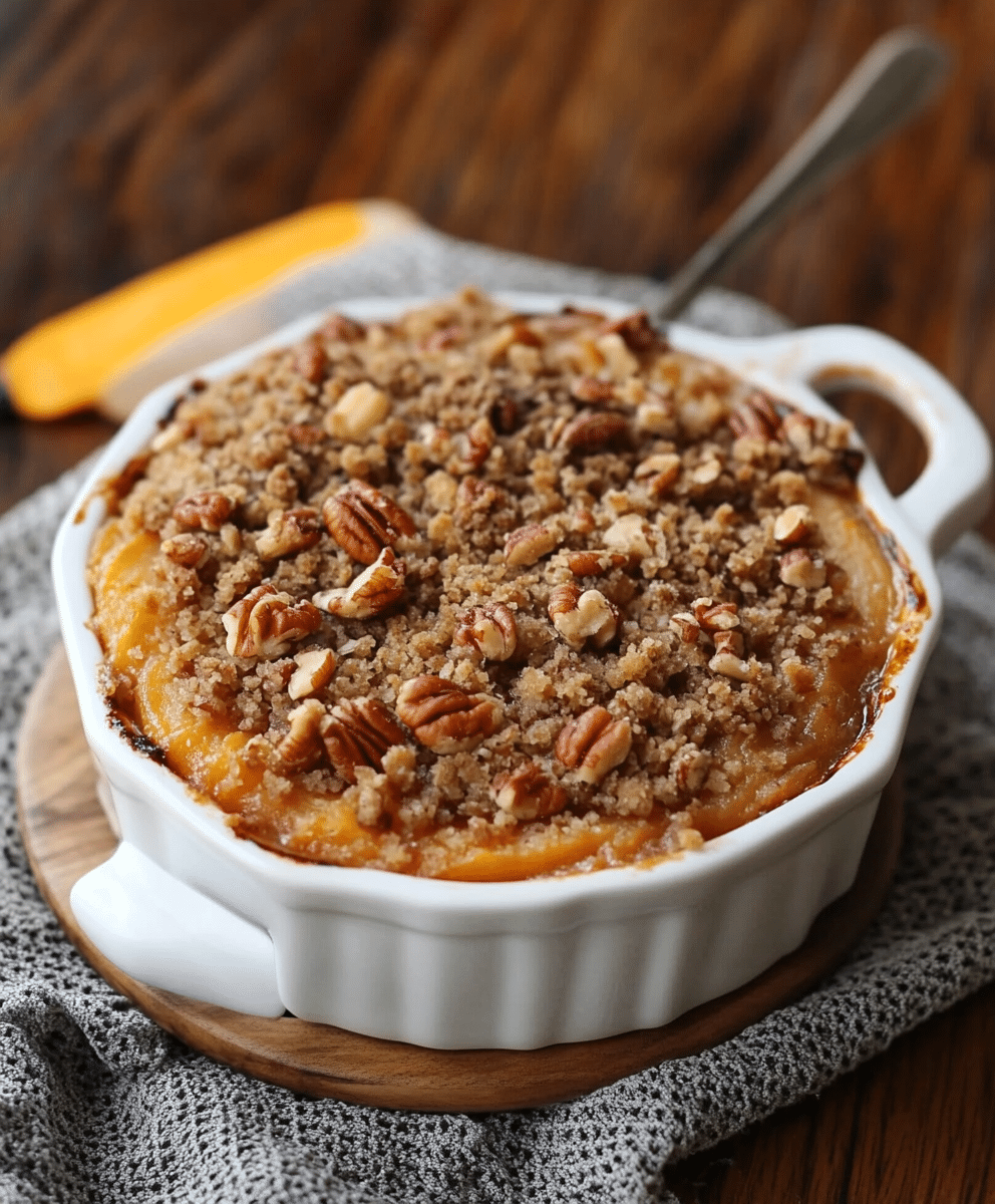 Savory Twist: Add a touch of cayenne pepper or smoked paprika to the sweet potatoes for a sweet-and-spicy combo. You can also sprinkle crispy bacon bits into the topping for a savory surprise.
