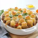 - Layered glass dish: Use a clear glass casserole dish to show off the layers of beef, vegetables, cheese, and crispy tater tots.