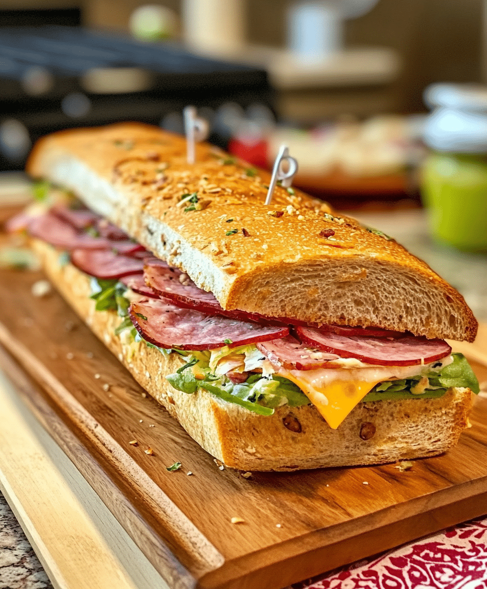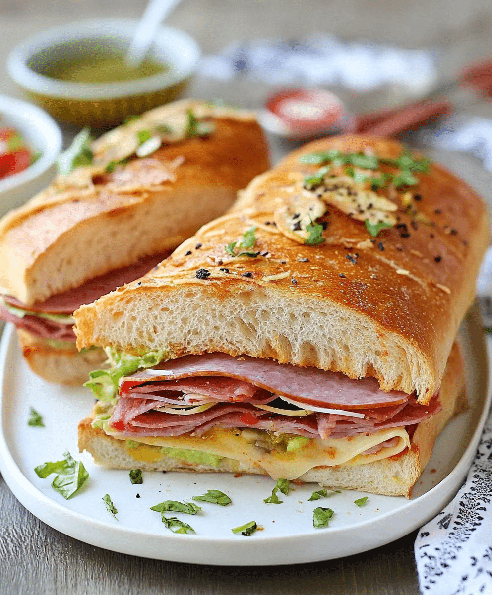 - Thinly Sliced Deli Meats: A mix of salami, pepperoni, and ham gives this sandwich its signature Italian flair. Feel free to use turkey or roast beef for a twist.