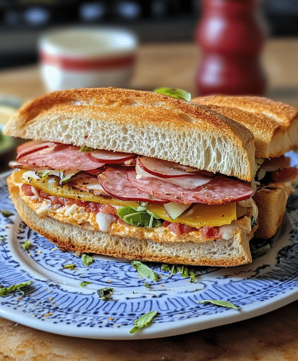 This toasted Italian sandwich recipe is packed with flavorful ingredients like cured meats, melted cheese, and fresh vegetables. Perfect for a quick and hearty meal, this sandwich is easy to prepare and satisfyingly delicious.
