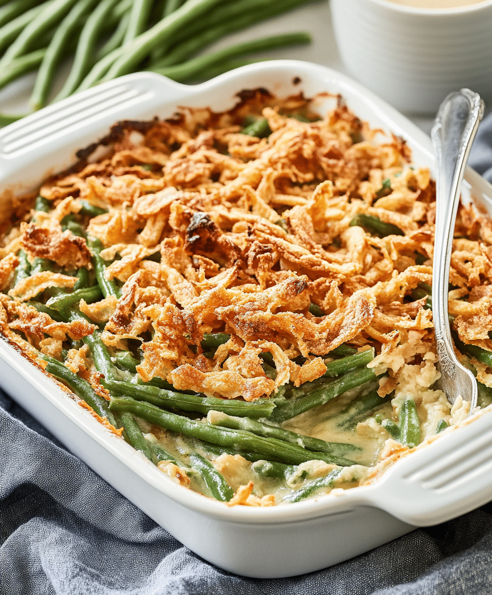 This Traditional Green Bean Casserole Recipe brings together fresh or canned green beans, creamy mushroom soup, and crispy fried onions, creating a comforting and timeless side dish that’s perfect for Thanksgiving or any family gathering.