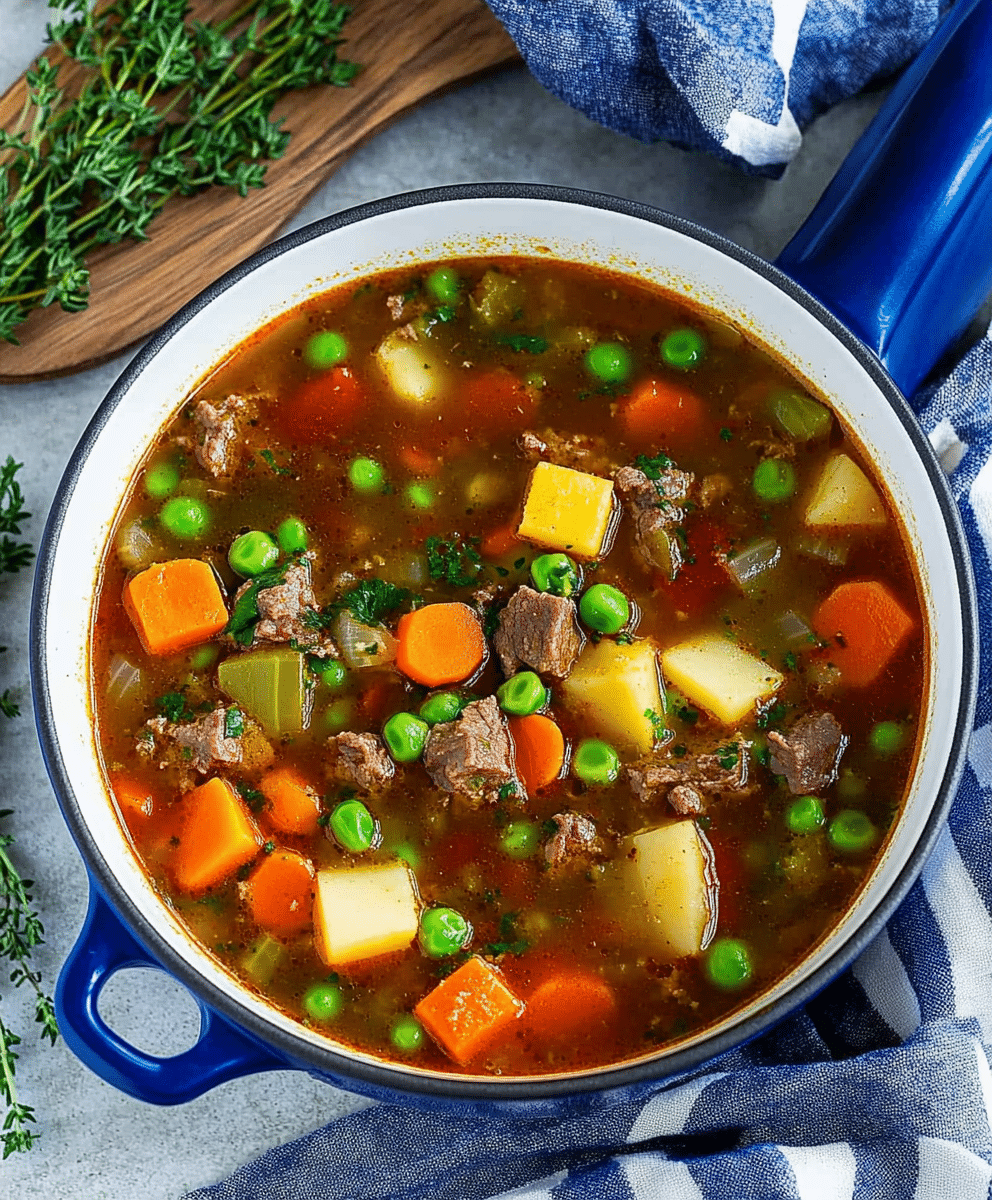 This hearty vegetable beef soup is a delicious blend of tender beef, fresh vegetables, and flavorful broth. A perfect comfort food packed with protein, vitamins, and nutrients, making it ideal for weeknight dinners or meal prep.