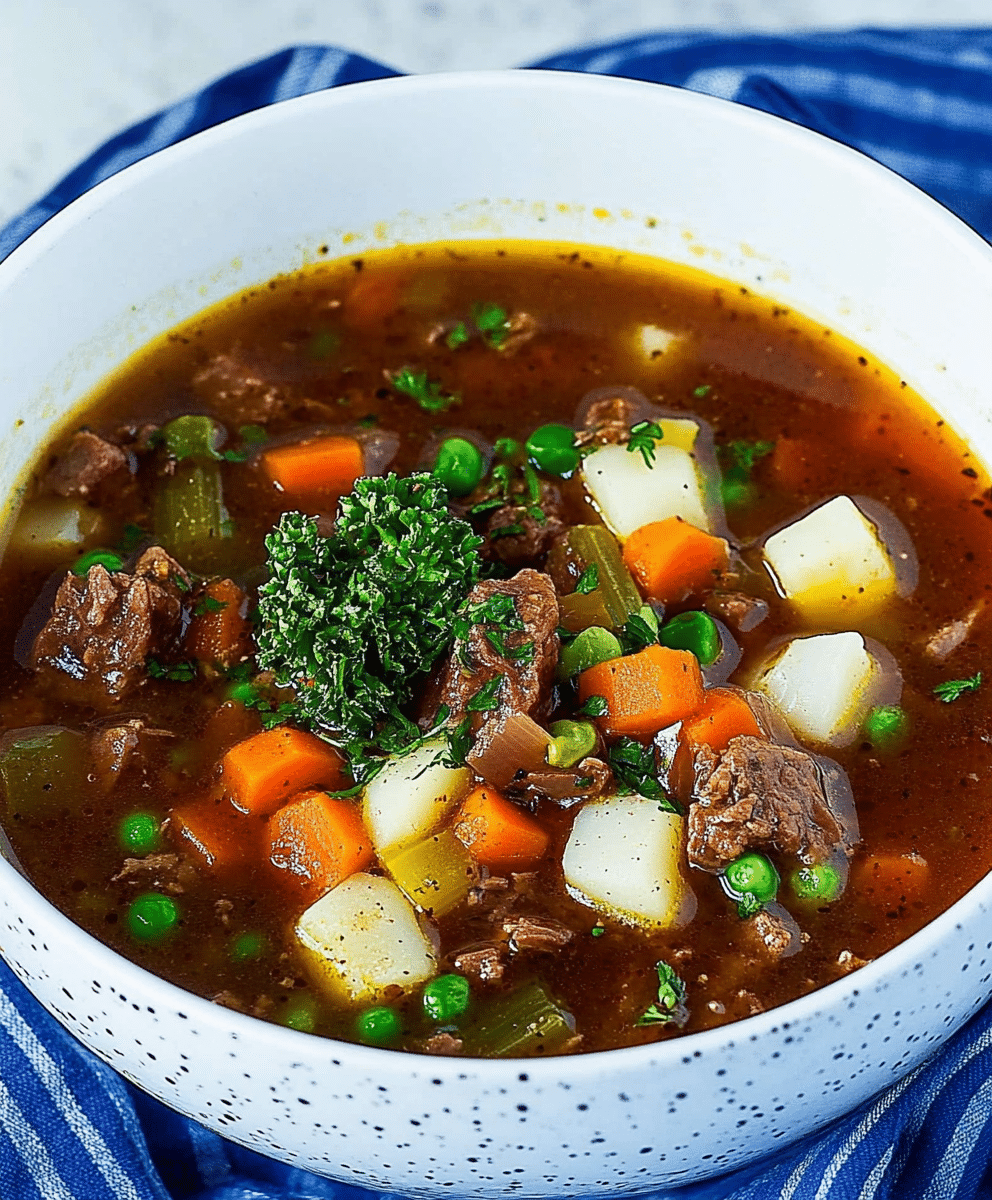 With its hearty ingredients and soul-warming flavors, this vegetable beef soup is sure to become a staple in your recipe rotation. Whether you’re serving it to guests or enjoying it solo on a quiet evening, it’s the ultimate comfort food for any occasion.