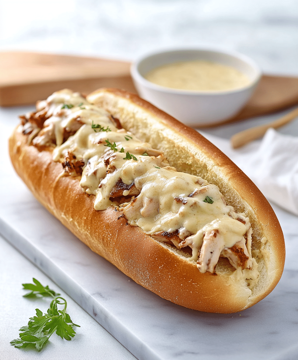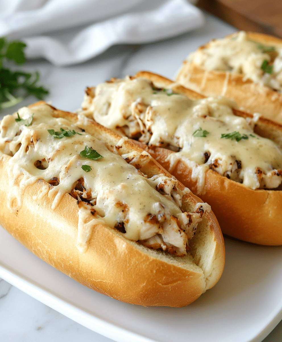 Finally, who doesn’t love a good toasted sub? The warm, crusty bread adds the perfect texture contrast to the creamy sauce and tender chicken. Serve them for lunch, dinner, or even game day snacks.